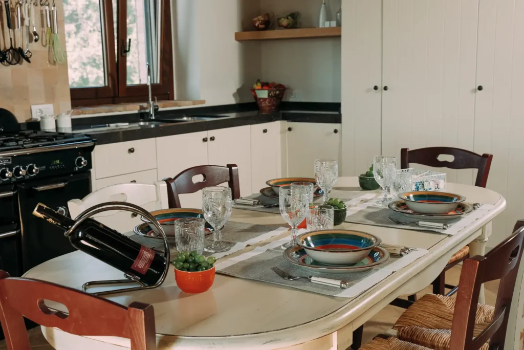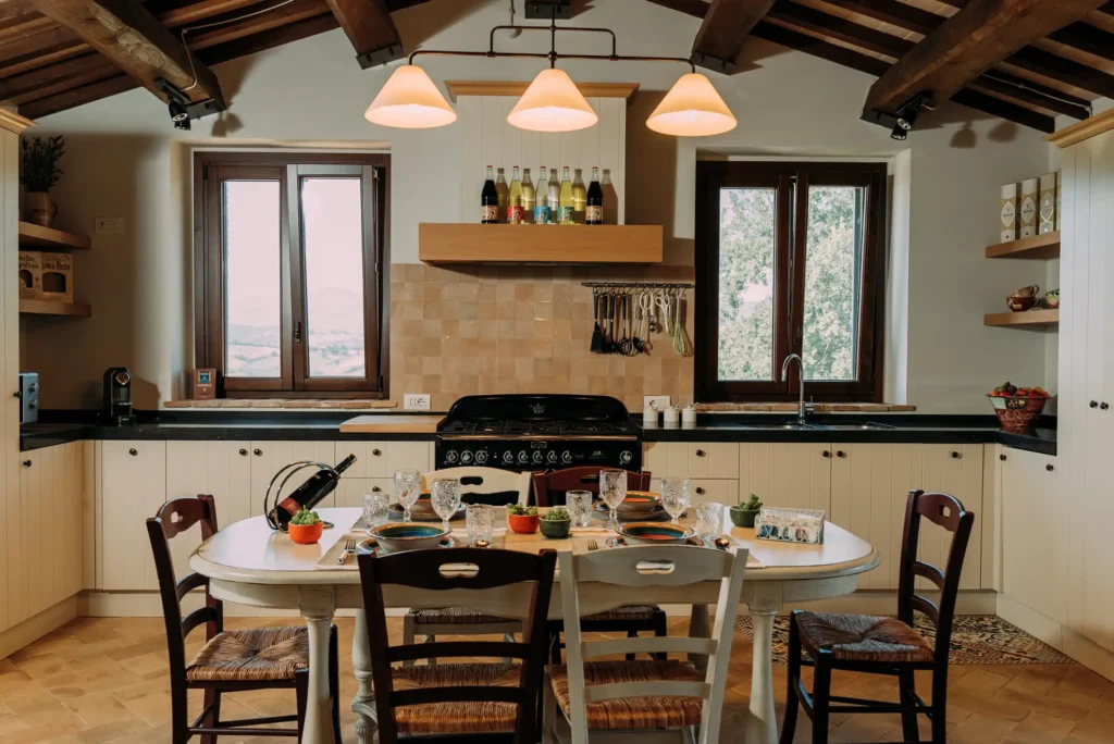 La casa dispone di una cucina country completamente attrezzata ed è dotata di un salotto accogliente, 3 bagni e 3 camere da letto per un massimo di 8 persone. Tutto è stato pensato per garantire il massimo comfort.