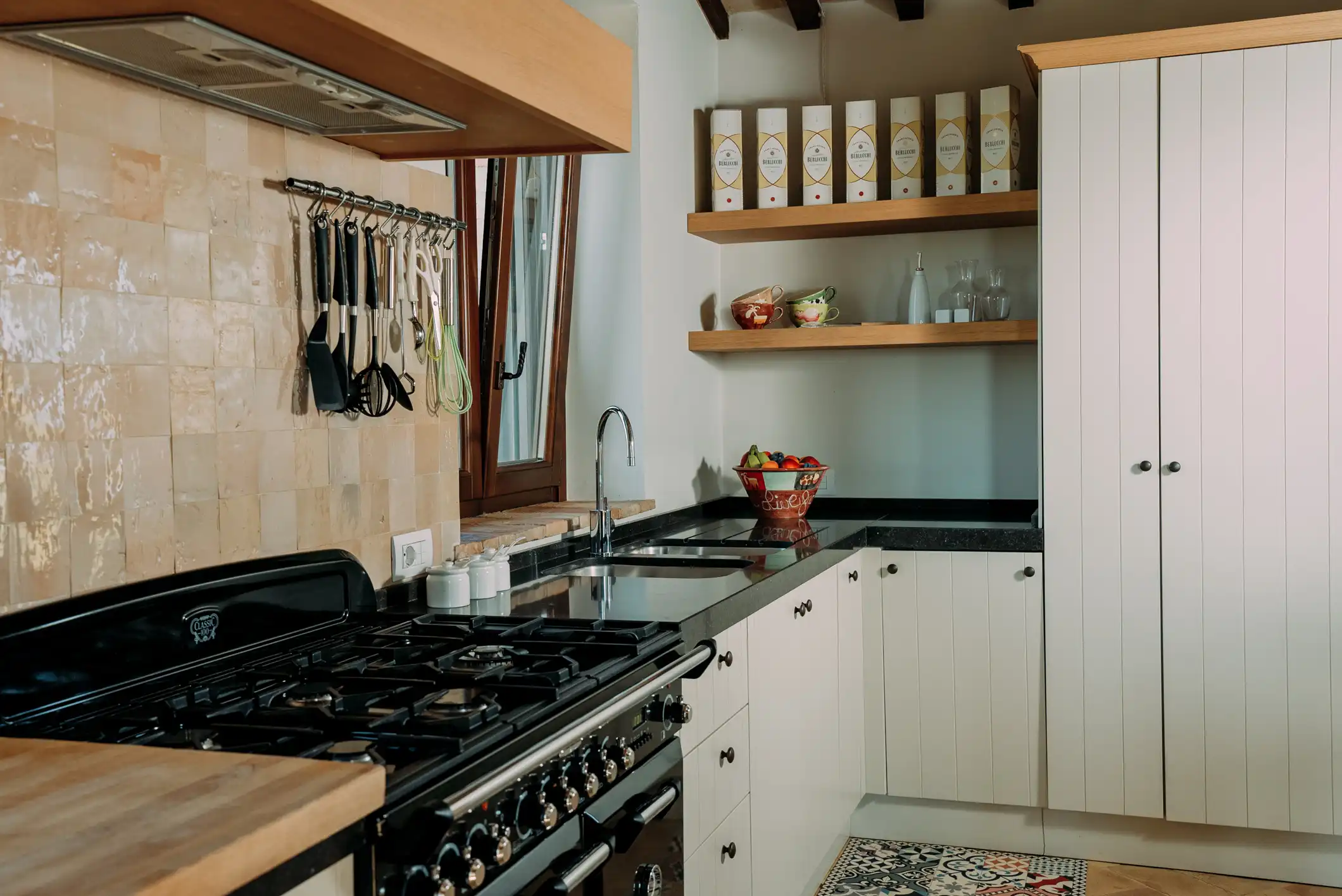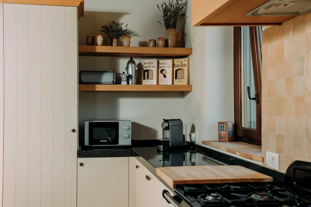 La cucina completamente attrezzata, é dotata di lavastoviglie, doppio forno, frigorifero, congelatore, microonde, macchina da caffè Nespresso, tostapane, ecc.